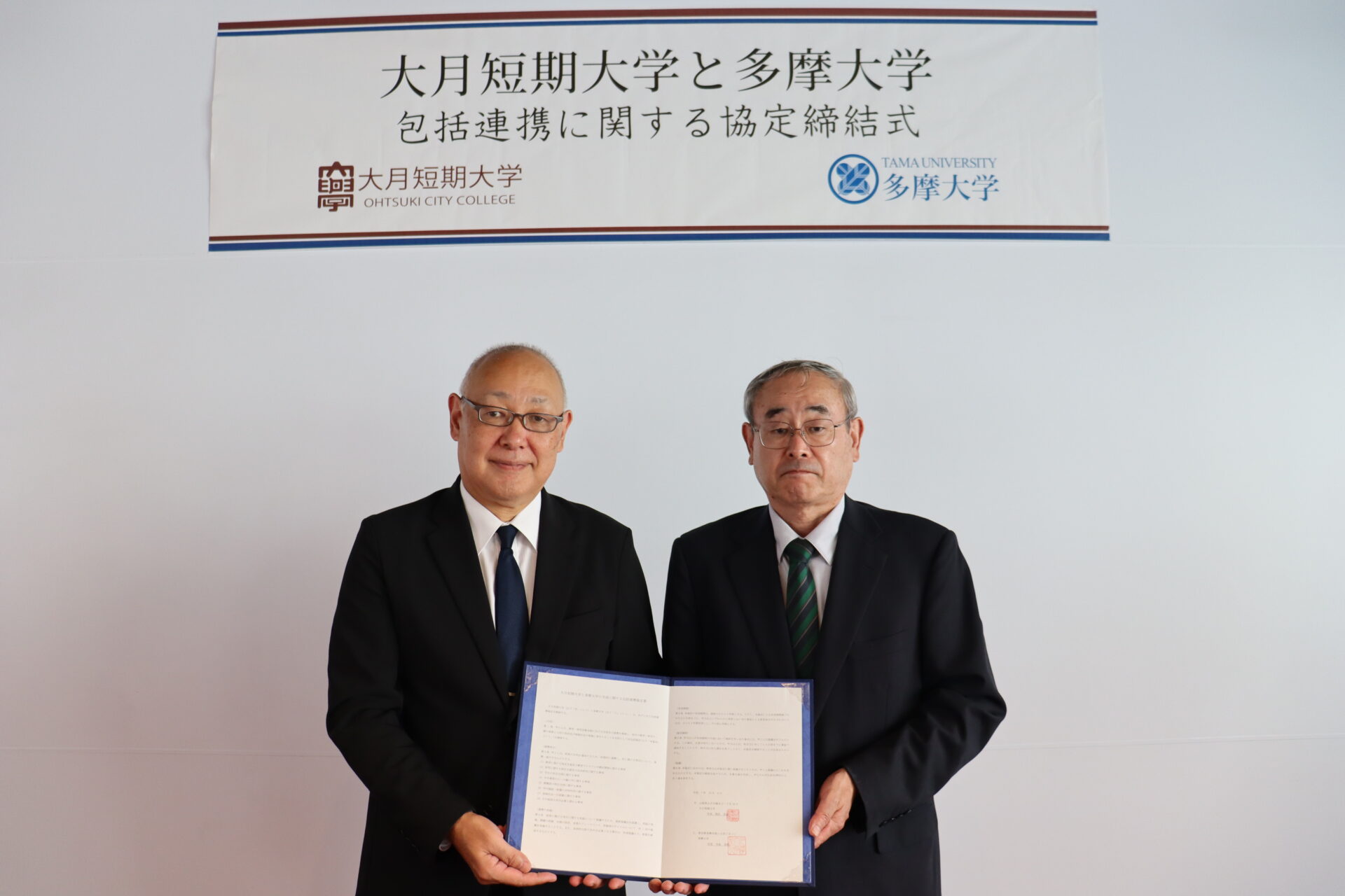 多摩大学(東京都多摩市、学長:寺島 実郎)と大月短期大学(山梨県大月市 学長: 栁沢 幸治)は、教育・研究活動全般における交流及び連携を推進し、相互の教育・研究の一層の発展と人材の育成及び地域社会の発展に寄与することを目的として、2025年10月6日(木)に「包括連携協定」を締結しました。