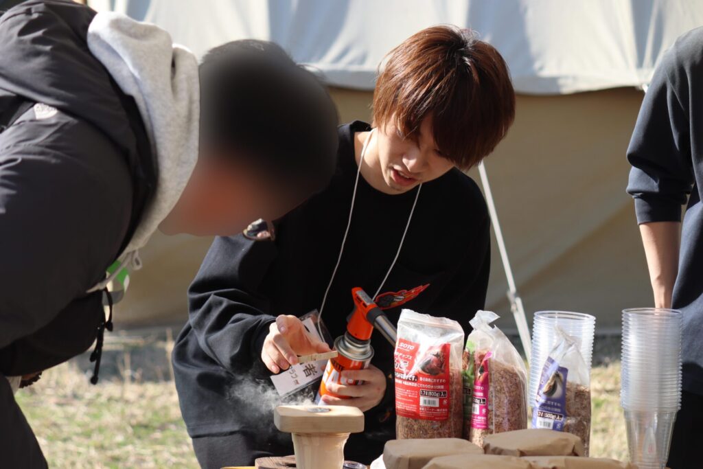 経営情報学部松本祐一ゼミ(学生:11名)が「江東区立若洲公園キャンプ場」にて開催された「焚火クラブ2024」に出店しました。ブースでは、学生たちが考案、制作した多摩産木材を活用したウイスキーを燻製させるグラストップスモーカー(正式名称:奥多摩スモーカー、10個)と熟成香をつけるウッドスティック【正式名称:奥多摩スティック】(20個)を販売しました。詳しくはこちら