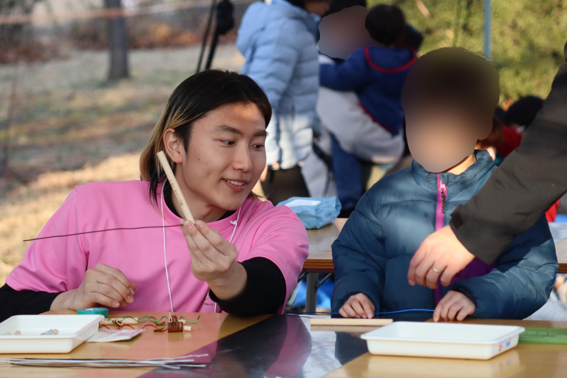 子どもを中心に憩いの場となった「木のおもちゃ体験」ブース