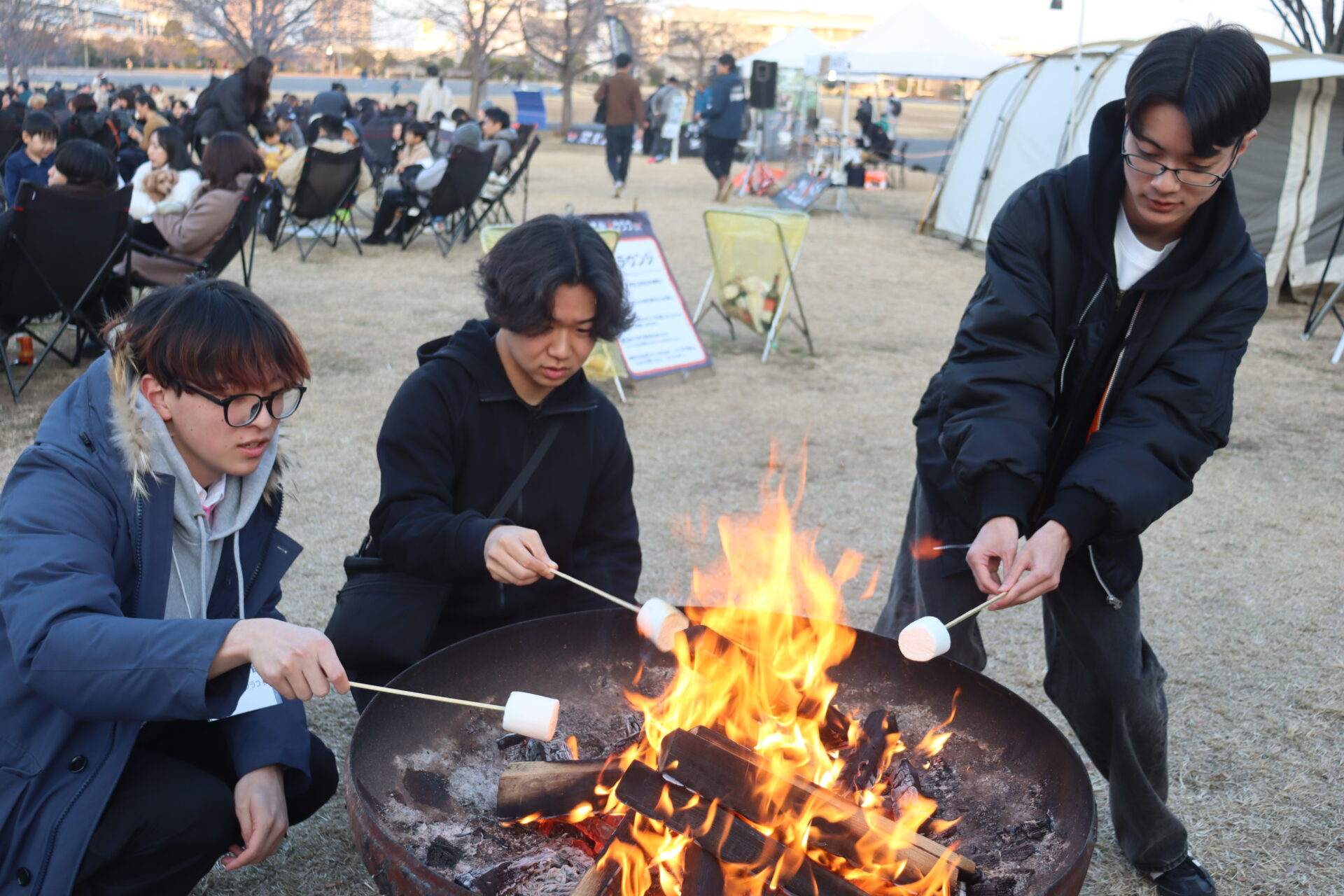 1月18日㈰、経営情報学部松本祐一ゼミ生8名が、「焚火クラブ2026」(於:国営東京臨海広域防災公園)に出店しました。