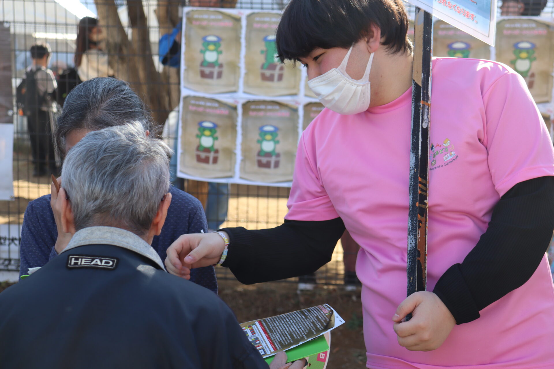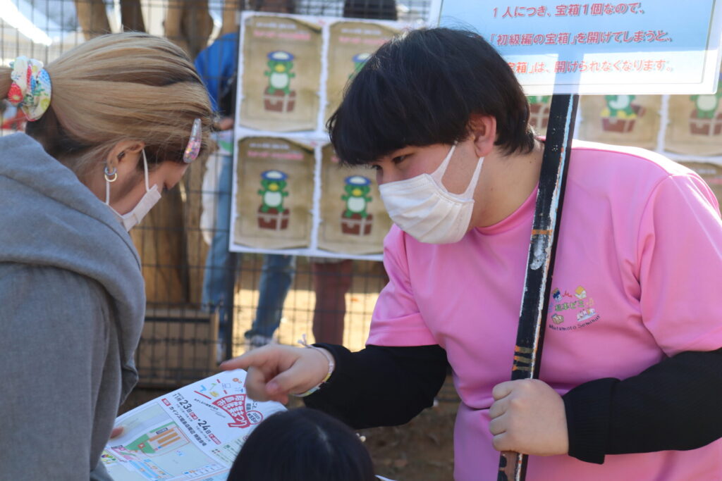 また、学生たちはなしゼリードリンクの販売だけでなく、同イベントの実行スタッフとしても活動し、宝探しのゴール地点で産業まつりで使用できる金券の説明を行ったほか、会場の案内等を行いました。地域住民の老若男女、様々な方との交流を行い、交流を通じ相互理解を深める機会ともなり、学生自身も社会貢献の貴重な経験を積むことができました。