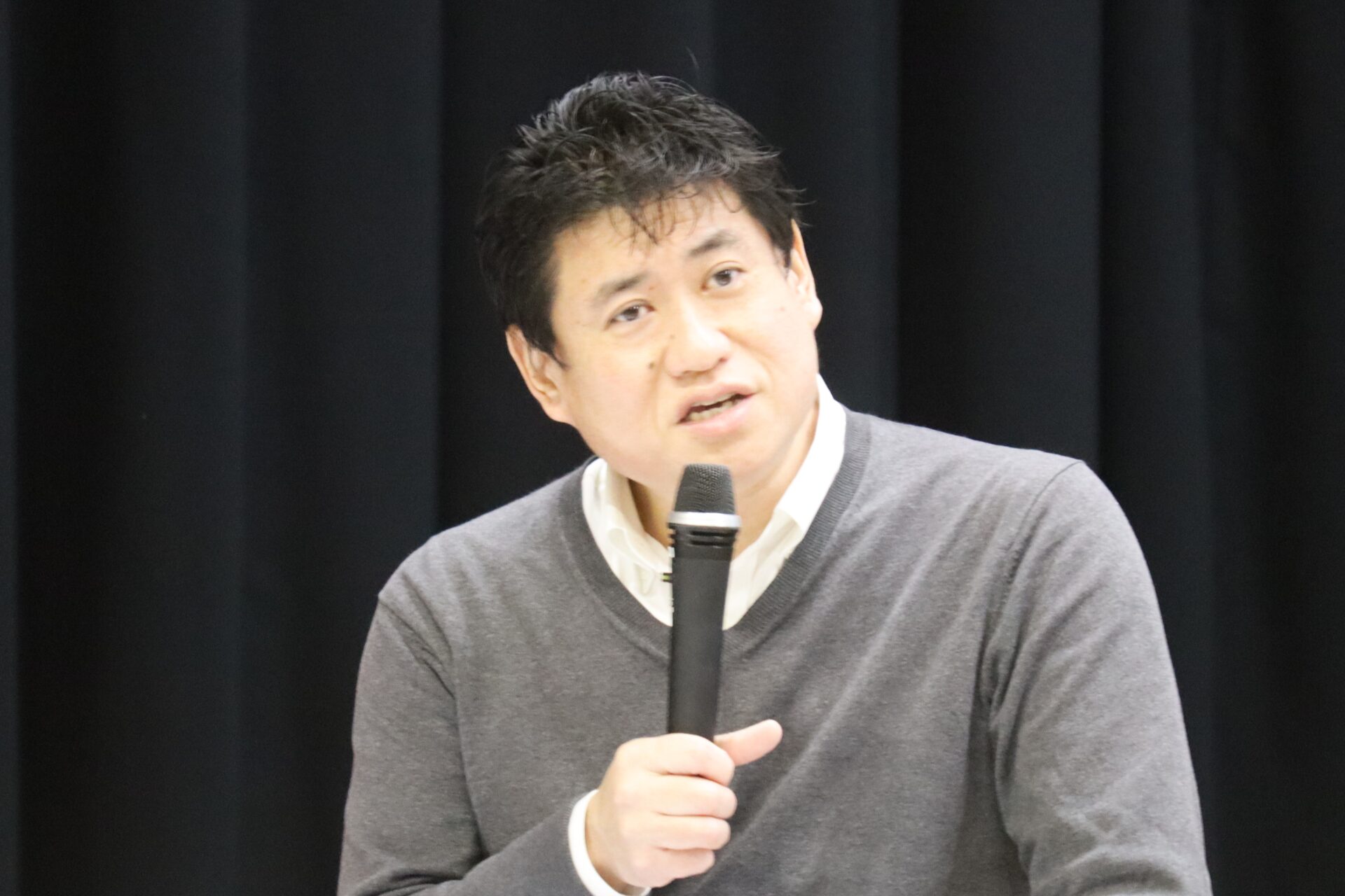 2025年12月18日、経営情報学部の授業、「事業構想最新事情」(履修人数:246名、担当:長島剛教授)にて、小田急電鉄株式会社 経営戦略部 課長 勝又俊介氏を講師に迎え、「サステナビリティ経営と事業構想」をテーマにした特別講義が行われました。