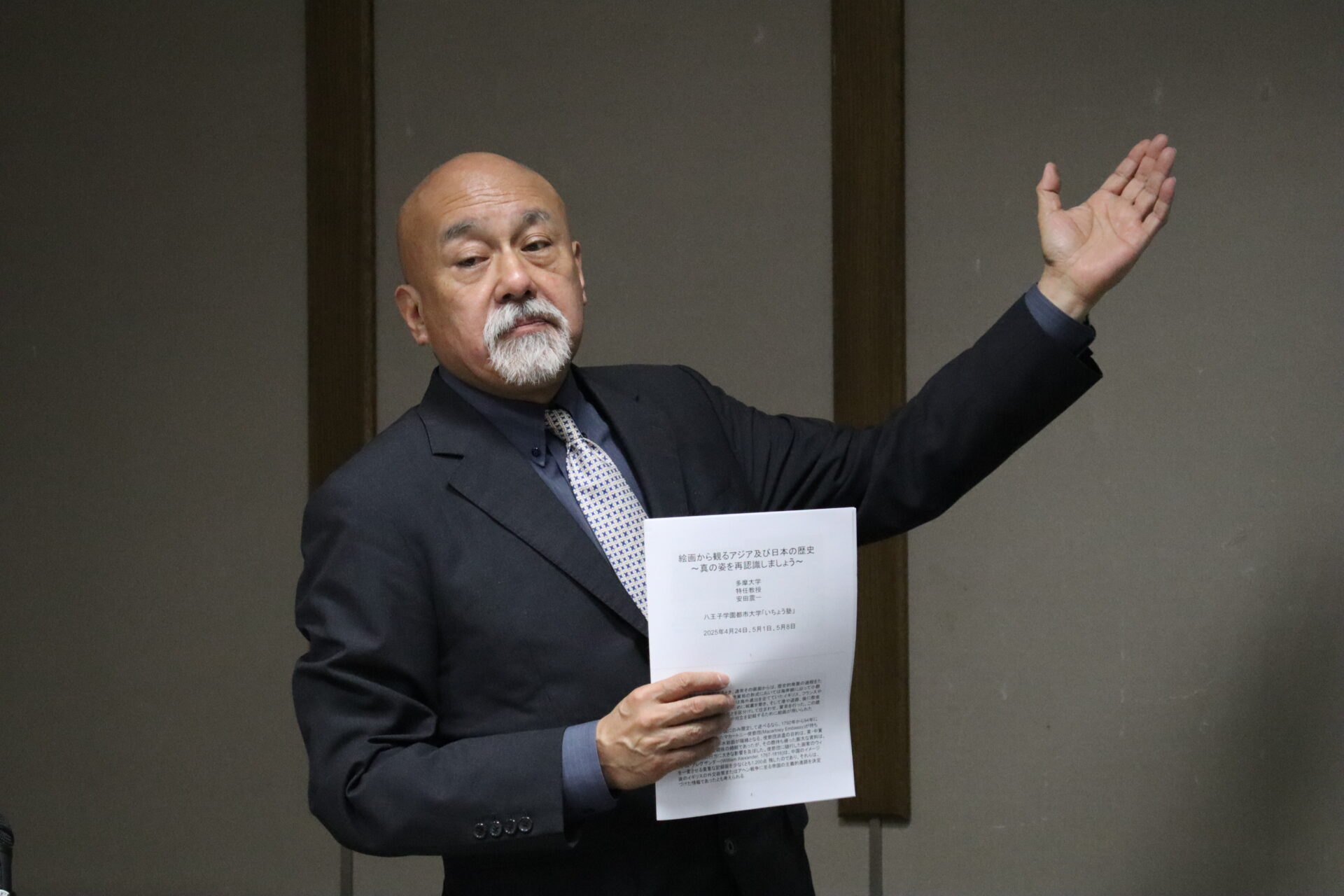 4月下旬から5月初旬にかけて3回にわたり開講された、八王子学園都市大学「いちょう塾」の一般講座「絵画から観るアジア及び日本の歴史 ~真の姿を再確認しましょう~」に、本学 経営情報学部 安田震一特任教授が登壇しました。