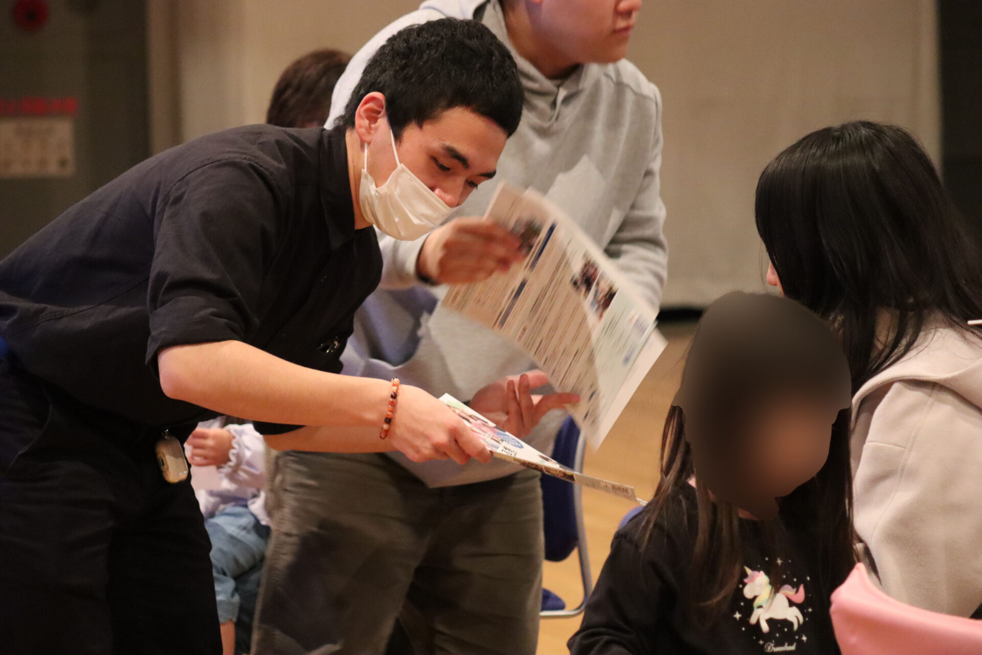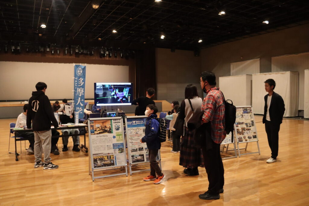 また、学生たちは来場された方に、1月10日より実施を予定している、「川崎駅~市立川崎病院」のルートでの自動運転バス(レベル4)の実装を目指した実証実験の告知も行いました。その他、自動運転についての質問に対する回答や、実装の壁となる事情等の説明を行い、来場者へ自動運転の理解を深めることができました。