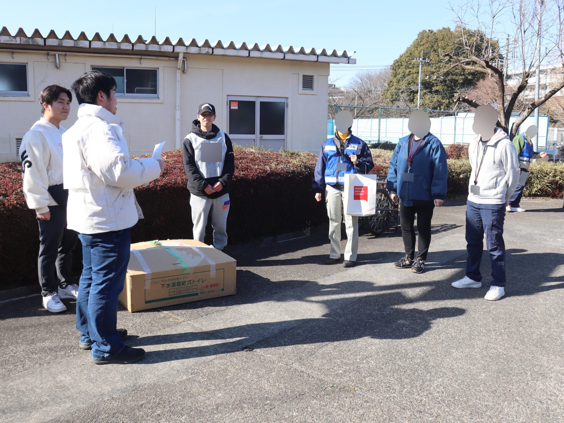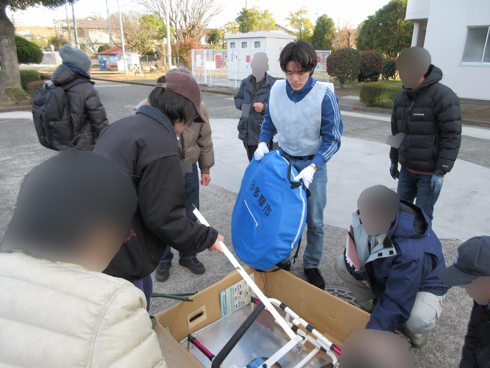 1月31日、避難所に指定されている市内の複数の小中学校で多摩市総合防災訓練が行われ、本学の学生15名が、それぞれの小中学校にて、避難所開設の支援、防災用具の設置や展示・実演を行いました。