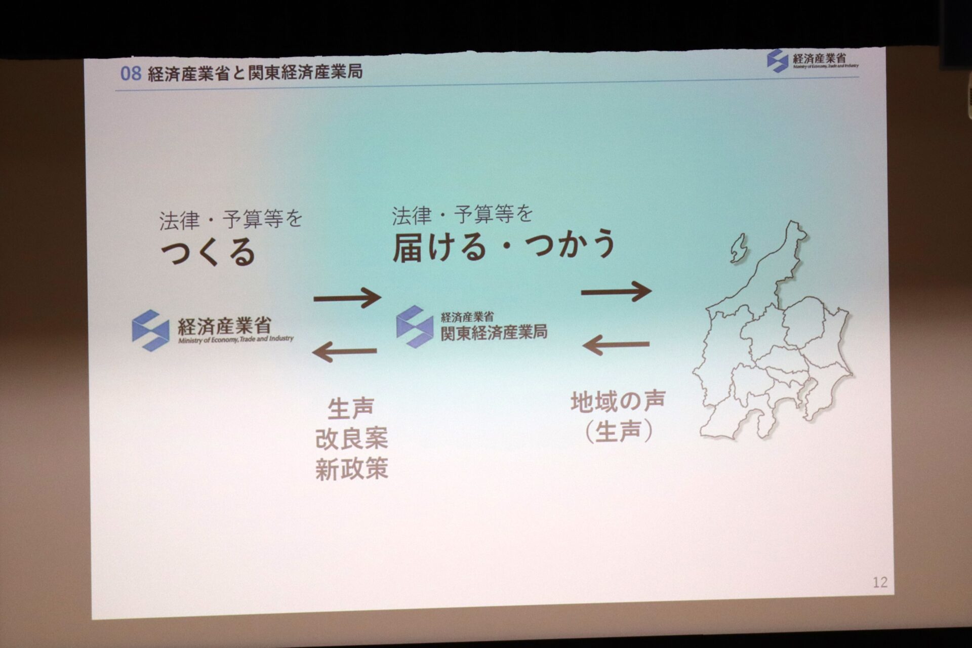経済産業省は日本全体の経済政策を立案・実行する中央機関であるのに対し、関東経済産業局はその政策を地域に届ける地方機関として、1都10県を管轄しています。